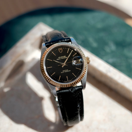 1995 Prince Oyster Date 18K Gold Steel Black Dial ref 74033, Watch only.