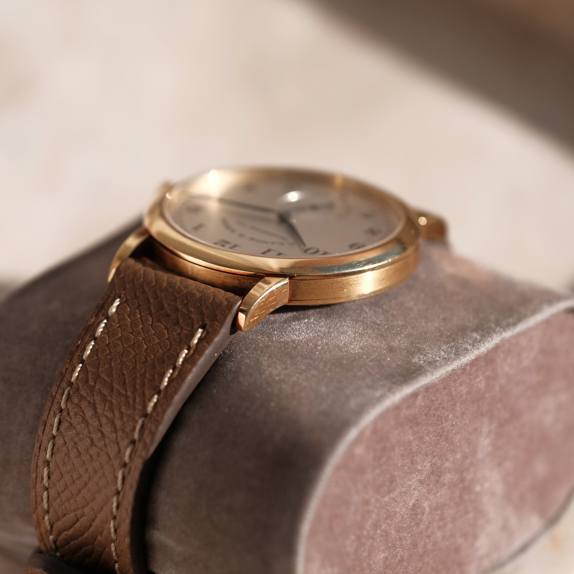 From the German-Silver 3/4 quarter plate movement, to the satin brushed mid case & engraved balance-cock; there isn’t a dull moment with this 1815. Coming in at a tasteful 36mm cases size; its slides right under the cuff perfectly, enchanting anyone who lays eyes on it.