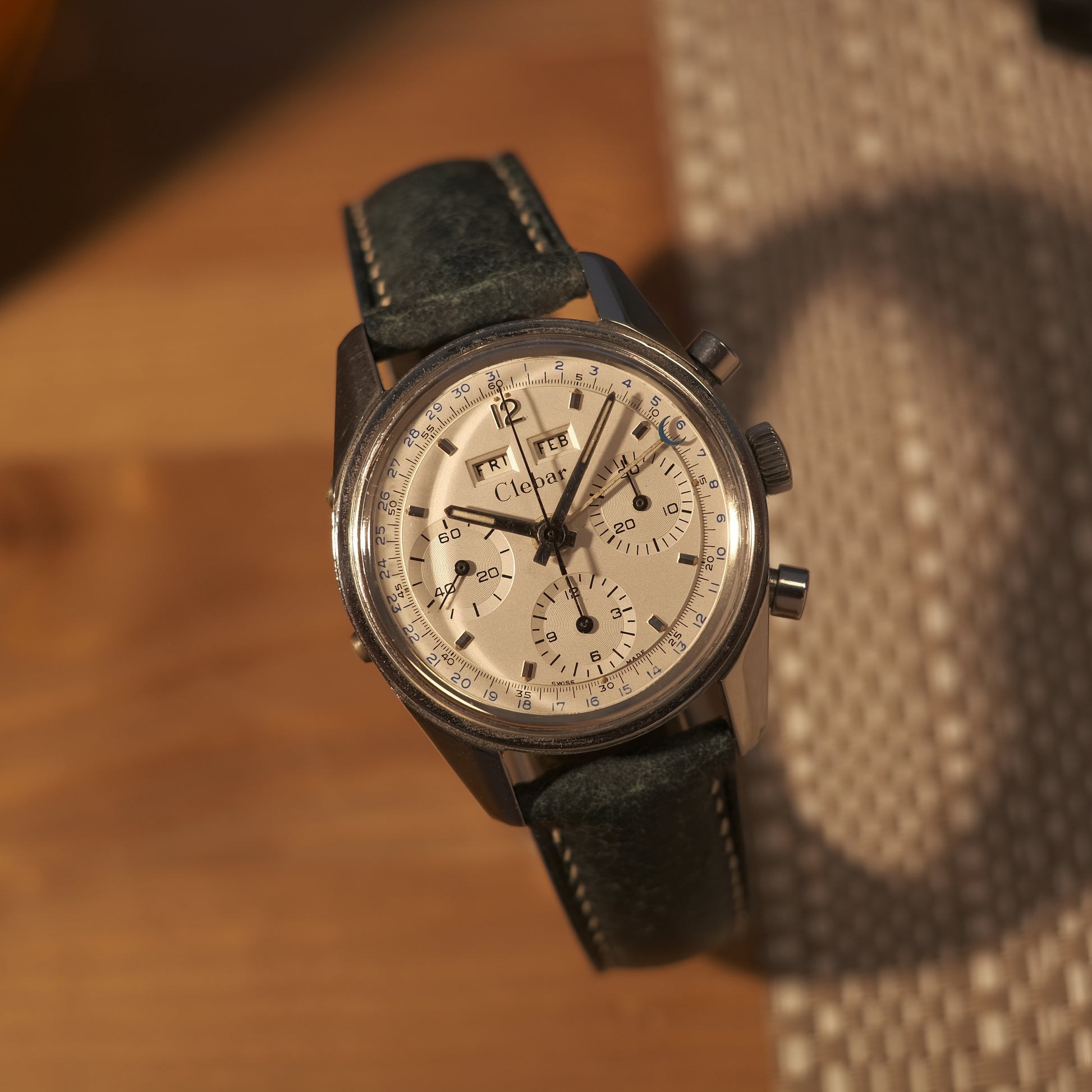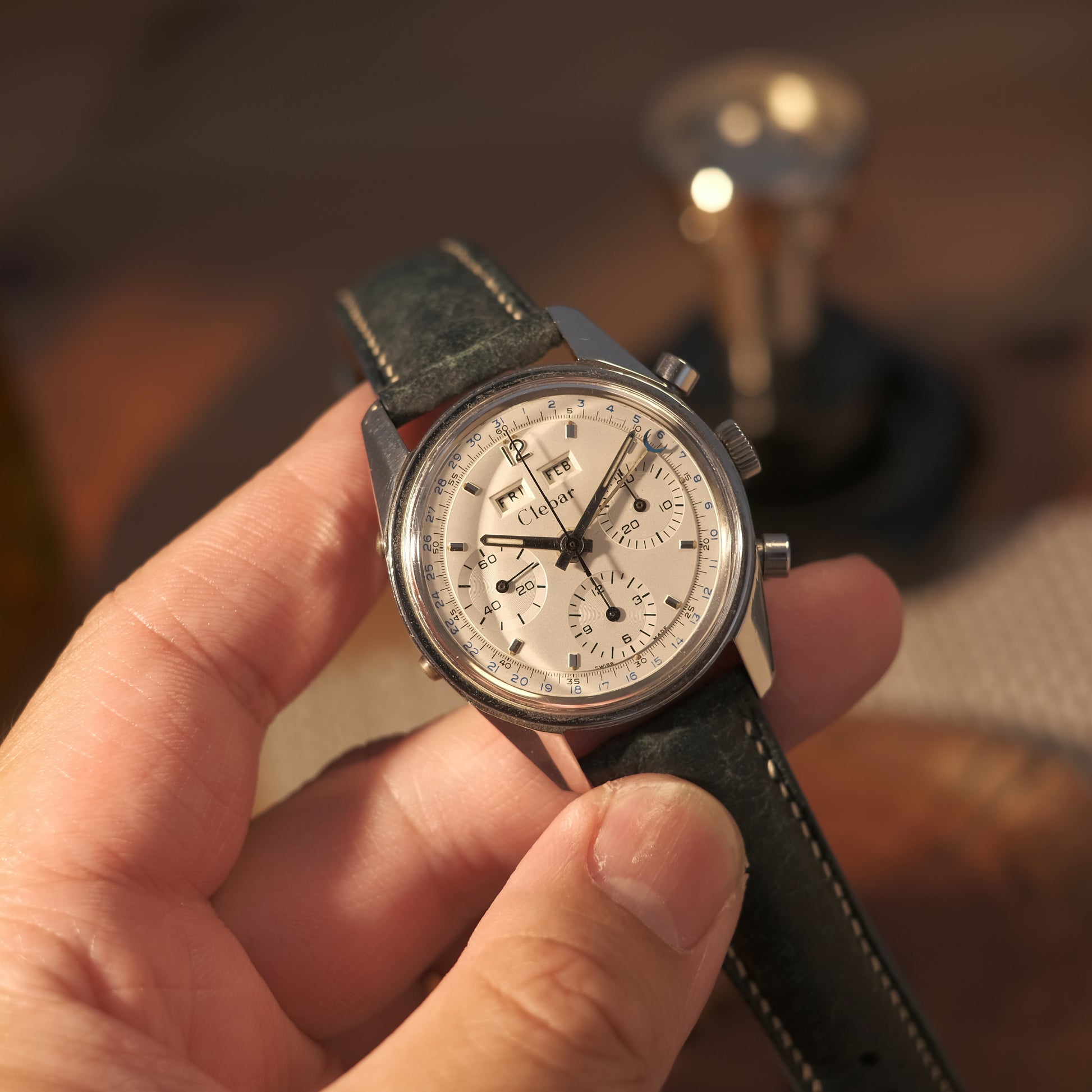 On offer today is a special offering, a rare & collectible Clebar triple date chronograph with a silver dial; ref 2547 S dating to circa 1960’s.