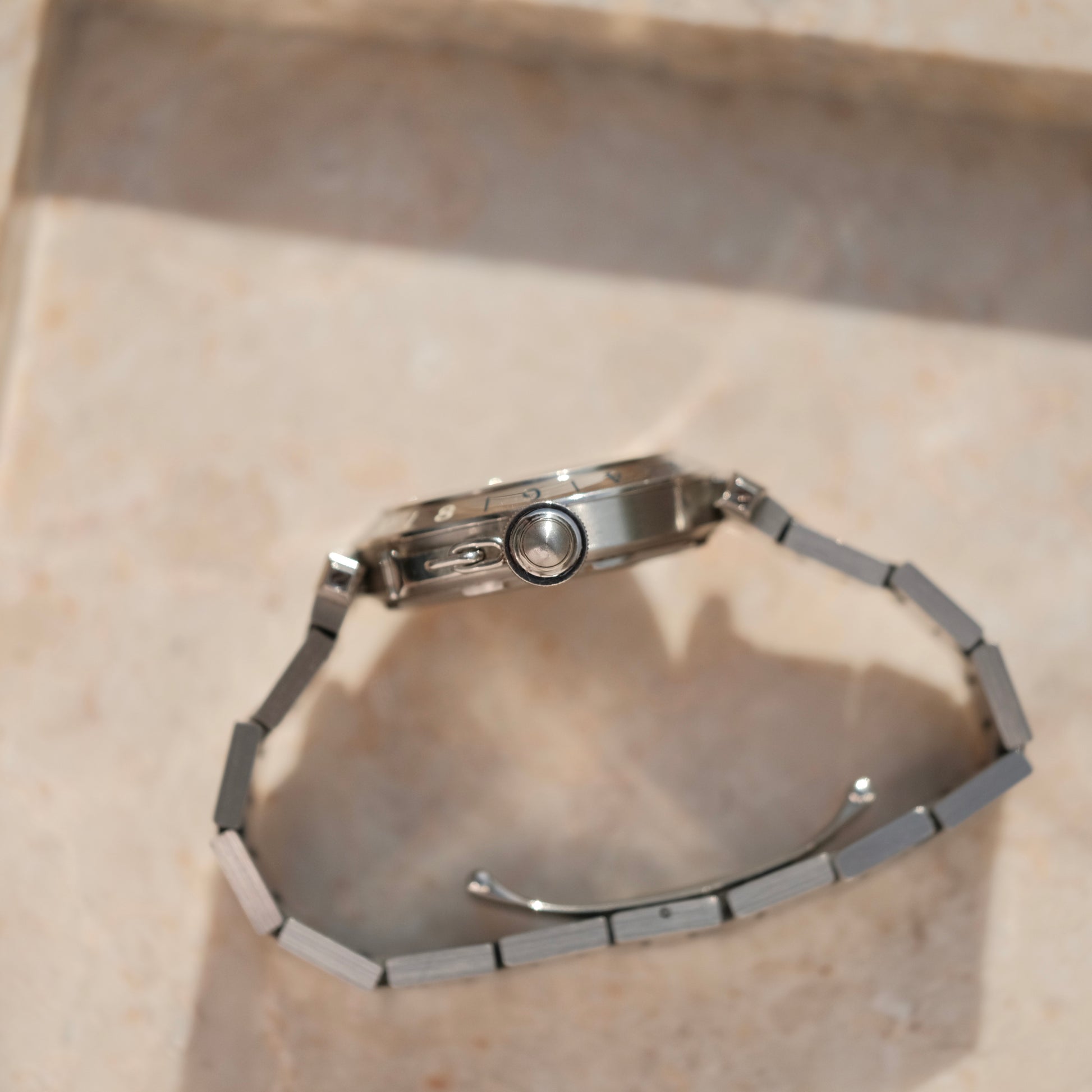 Taking it’s namesake from the Pasha of Marrakech’s original commission from the 30’s; the Pasha features a bold oversized crown & vendome lugs; complemented with Art-Deco stylized 12,3,6 & 9 numerals.