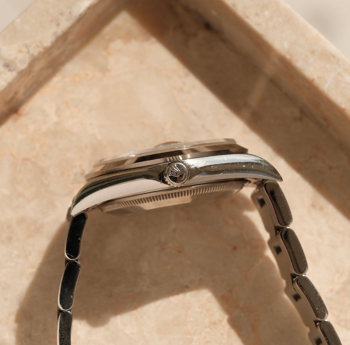 While seemingly ordinary, the 15200 somewhat of a near perfect reference for the smaller wrist, encompassing the elegant aesthetic of the non-maxi cases, while having the practicality of quickset & the reliability of Rolex’s calibre 3135.