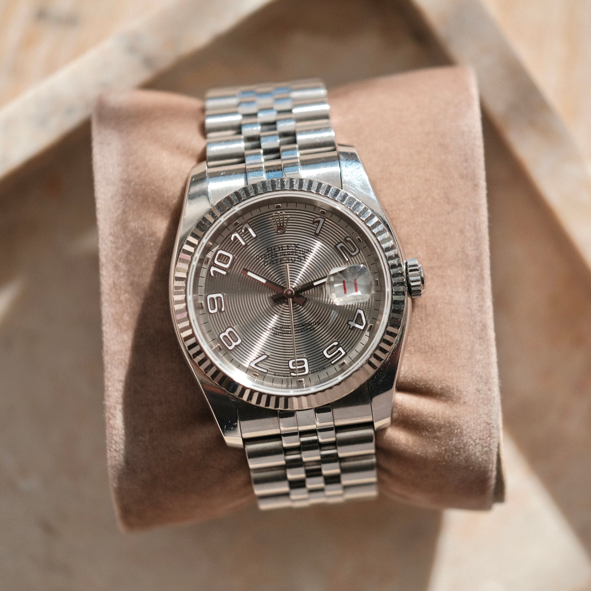On offer today is arguably the most timeless model from the crown, the DJ in the goldilocks 36 size - featuring a rare silver concentric racing dial; ref 116234 with a roulette date.