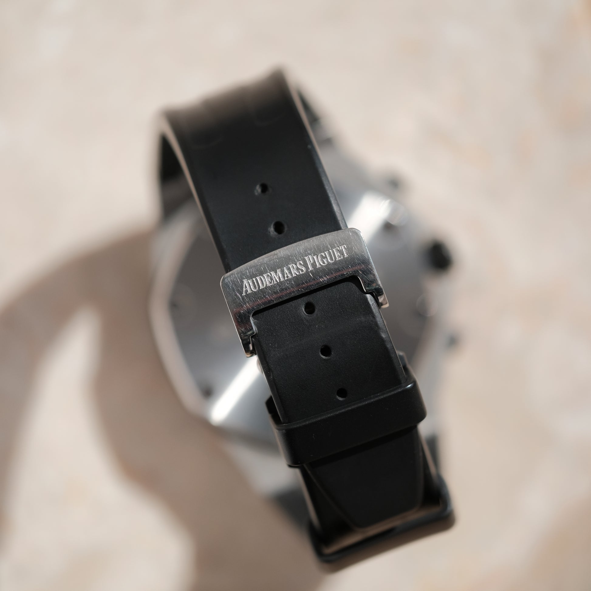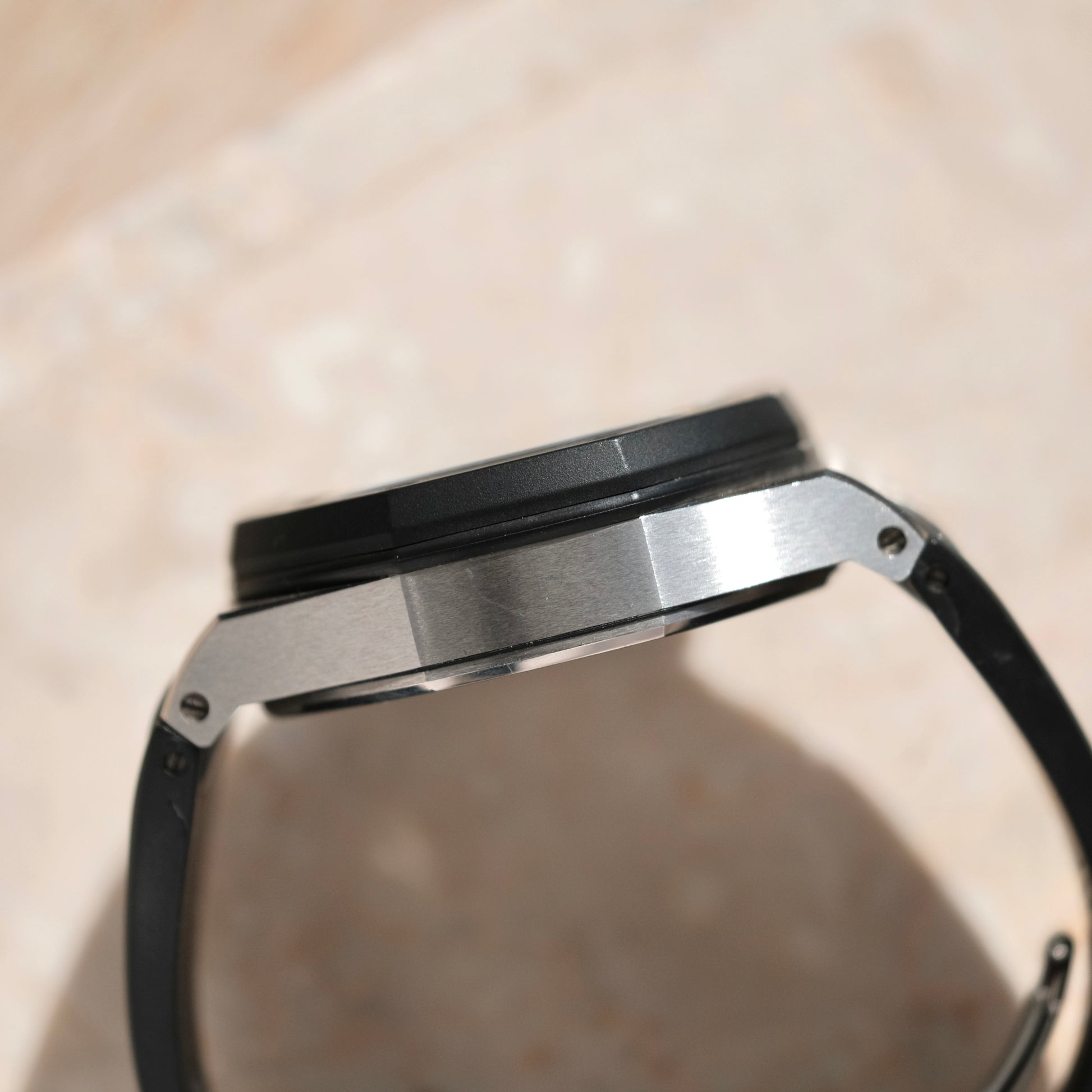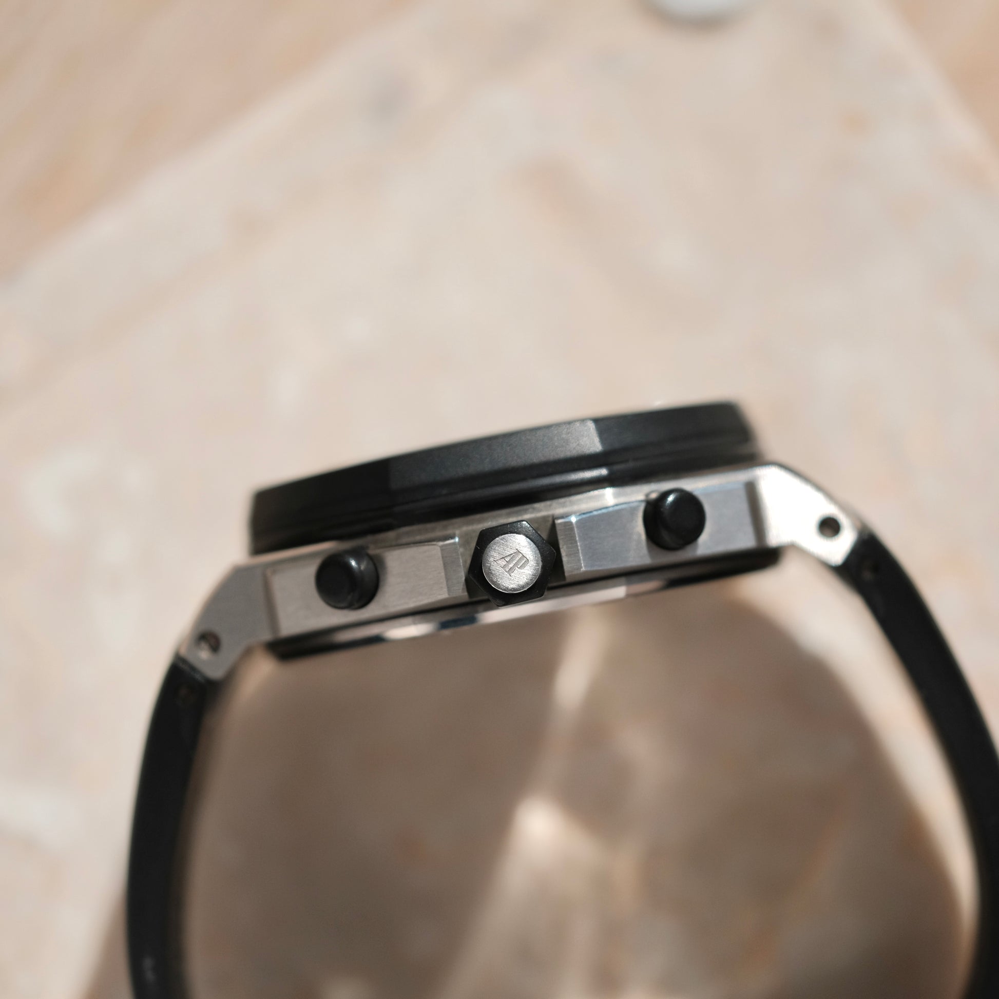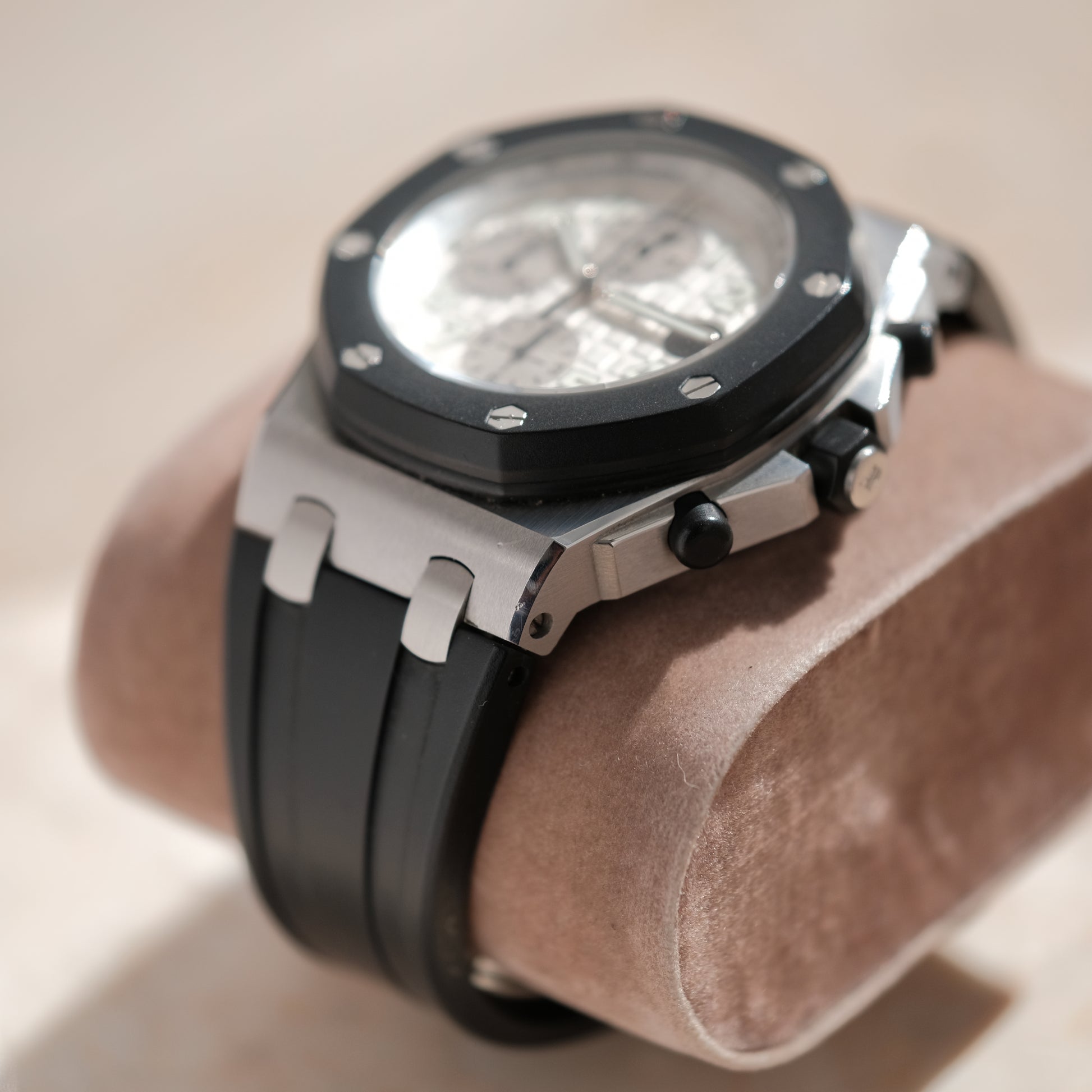 Being part of the early 2000’s obsession with oversized timepieces, the offshore features a 42mm case stature that certainly wears larger - with the legendary octagonal bezel made of rubber; hence earning the ‘Rubberclad’ moniker.