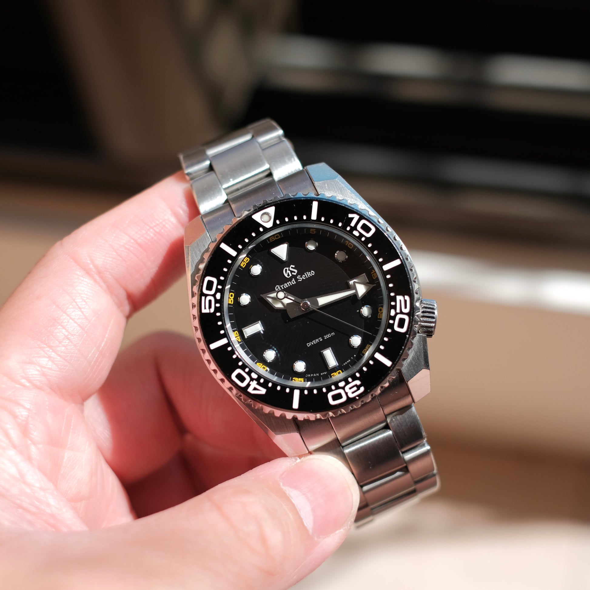 On offer today is a purpose-built muscular Grand Seiko diver with a ceramic bezel & quartz movement, ref SBGX335.