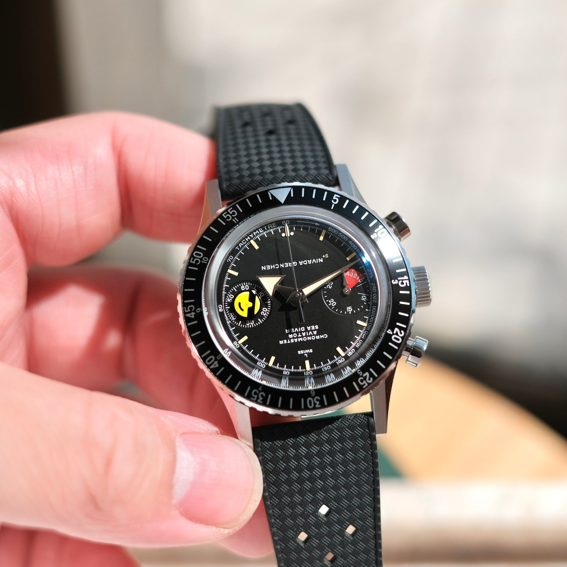 On offer today is a super fun, limited series collab from Nivada Grenchen X time + tide X Second/Seconde, the Chaosmaster with the ‘Smiley’ emoji, limited edition of only 33 pieces.