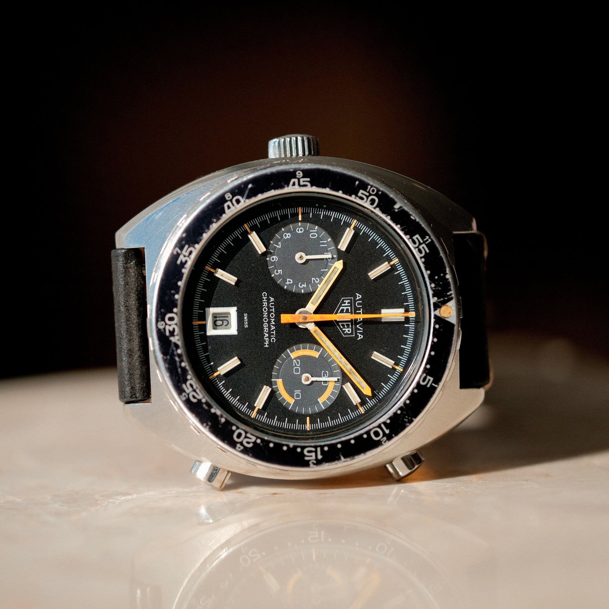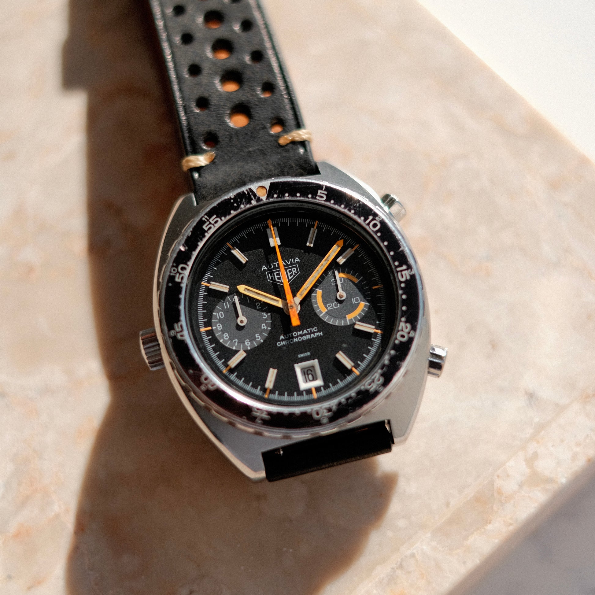 On offer today is a iconic & rare motorsports chronograph from the time keepers of the racing world; the Heuer Autavia MH 11630 with orange accents, dubbed the ‘Orange Boy’
