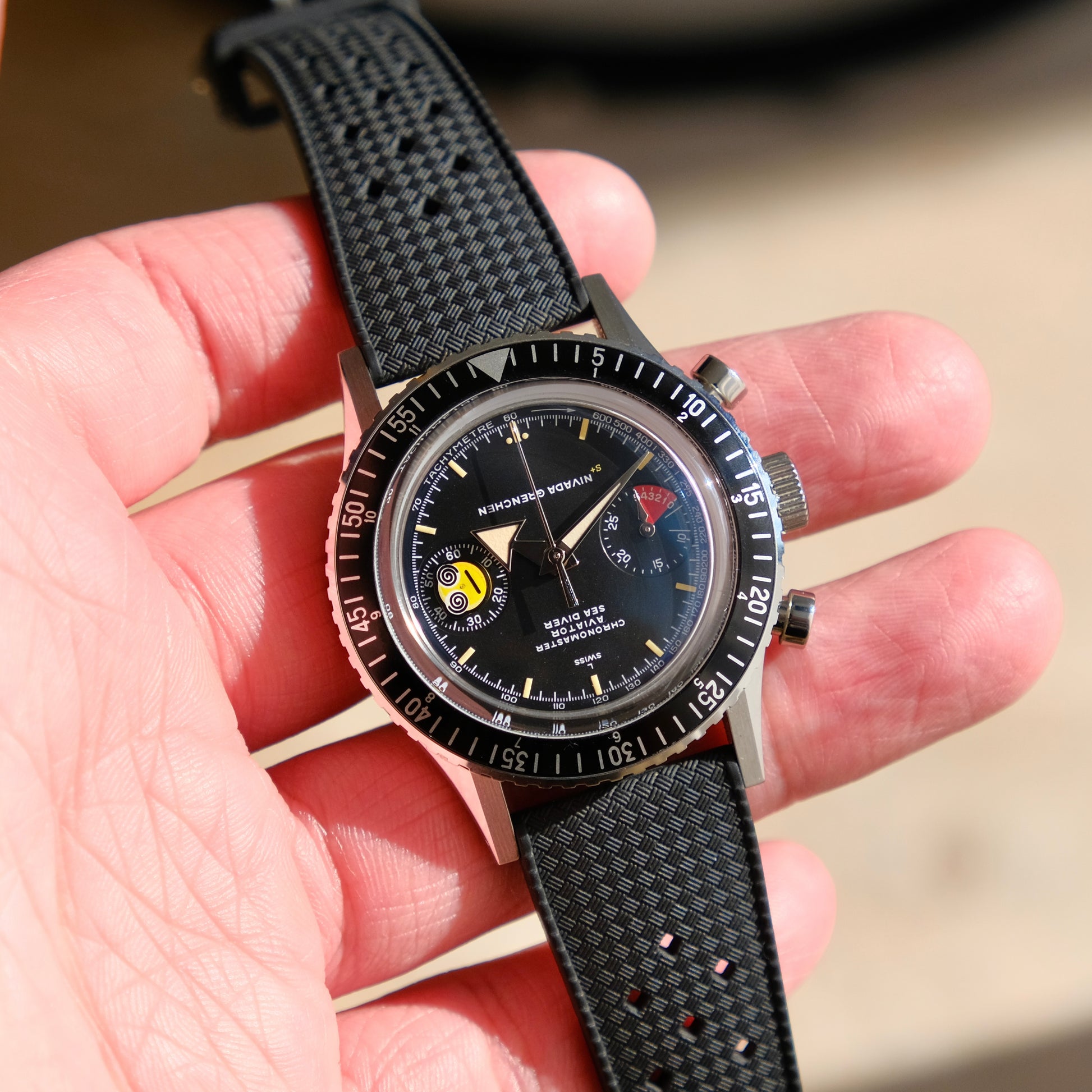 On offer today is a super fun, limited series collab from Nivada Grenchen X time + tide X Second/Seconde, the ‘Chaosmaster’ with the ‘swirly’ emoji, limited edition of only 33 pieces.