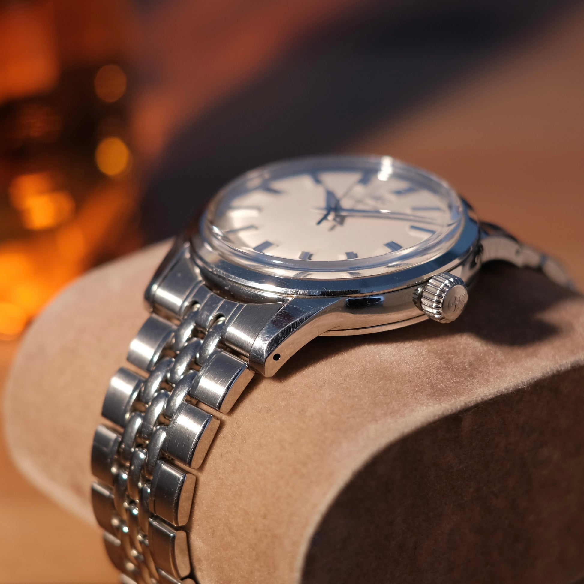 While Grand Seiko is notorious for their dreadful bracelets; this SBGW235's Beads of Rice is a true anomaly; from the comfortable - almost fabric like wrist feel, to the slim clasp & tasteful taper. And with all Grand Seiko's the manual-wind calibre 9S64 is finely finished with tokyo stripes & features a comfortable 3 day power reserve.