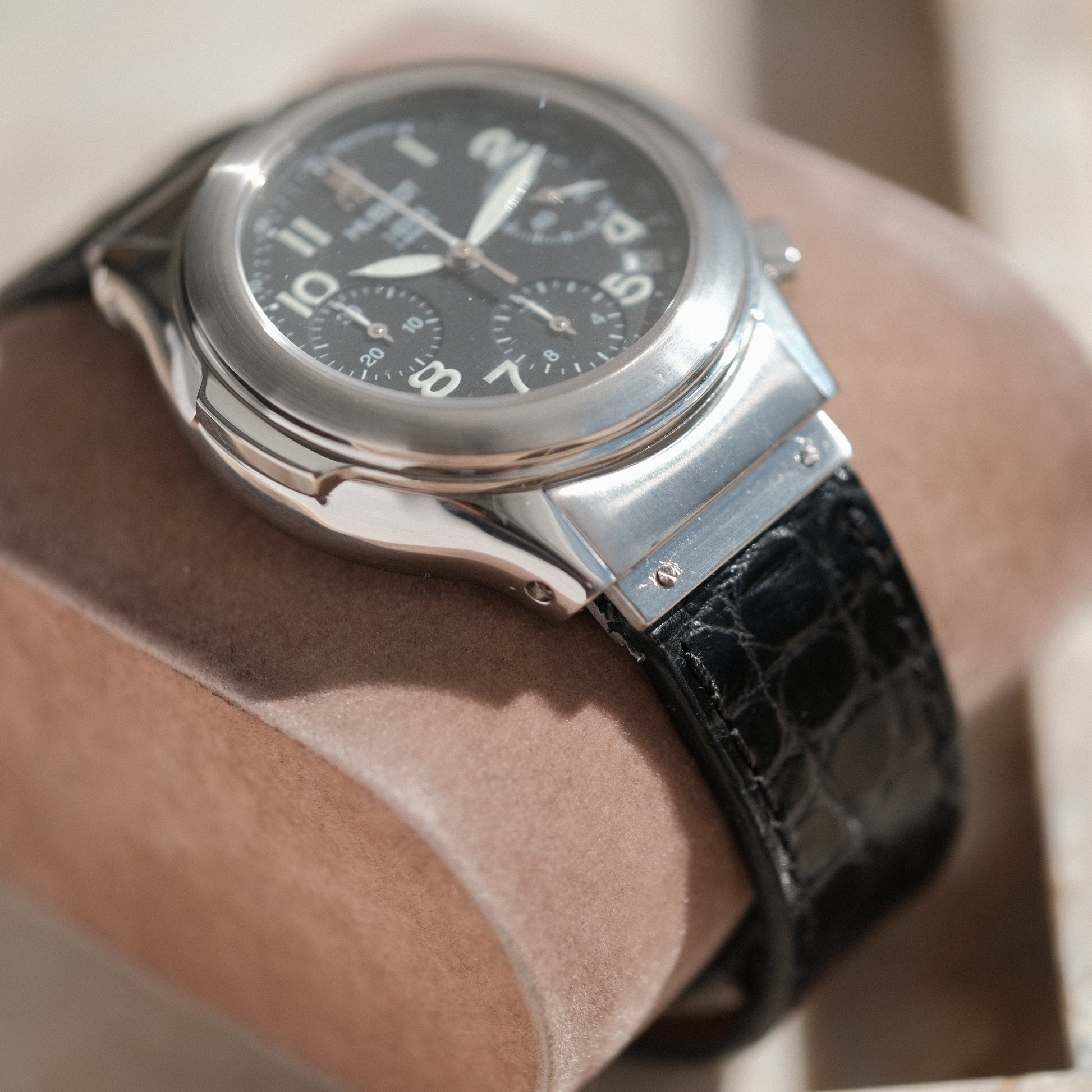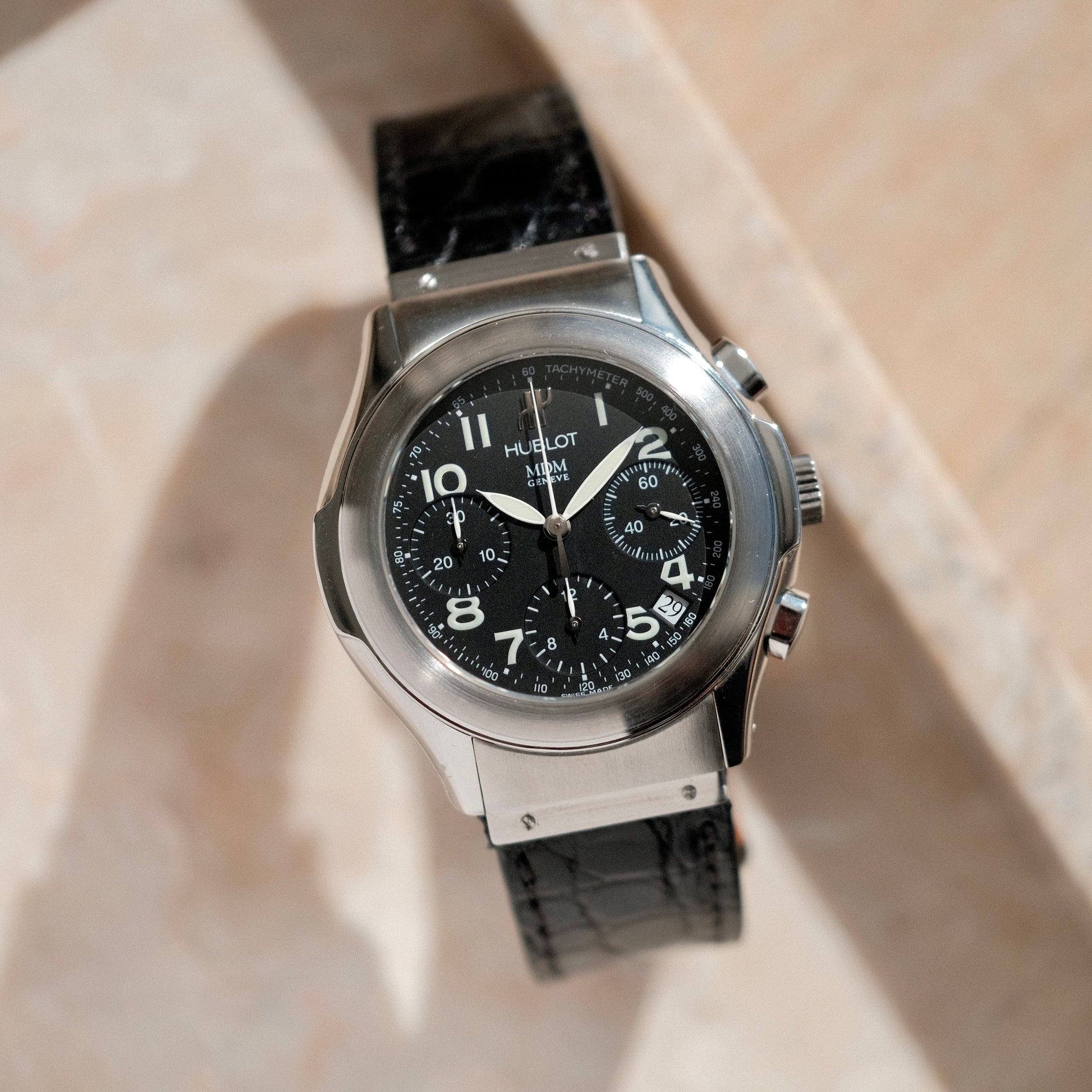 While the terms ‘Hublot’, ‘Neo-Vintage’ & ‘class’ are unlikely to ever be placed in a sentence. This classy neo-vintage Hublot MDM chronograph on offer today is an exception; ref 1810.1.
