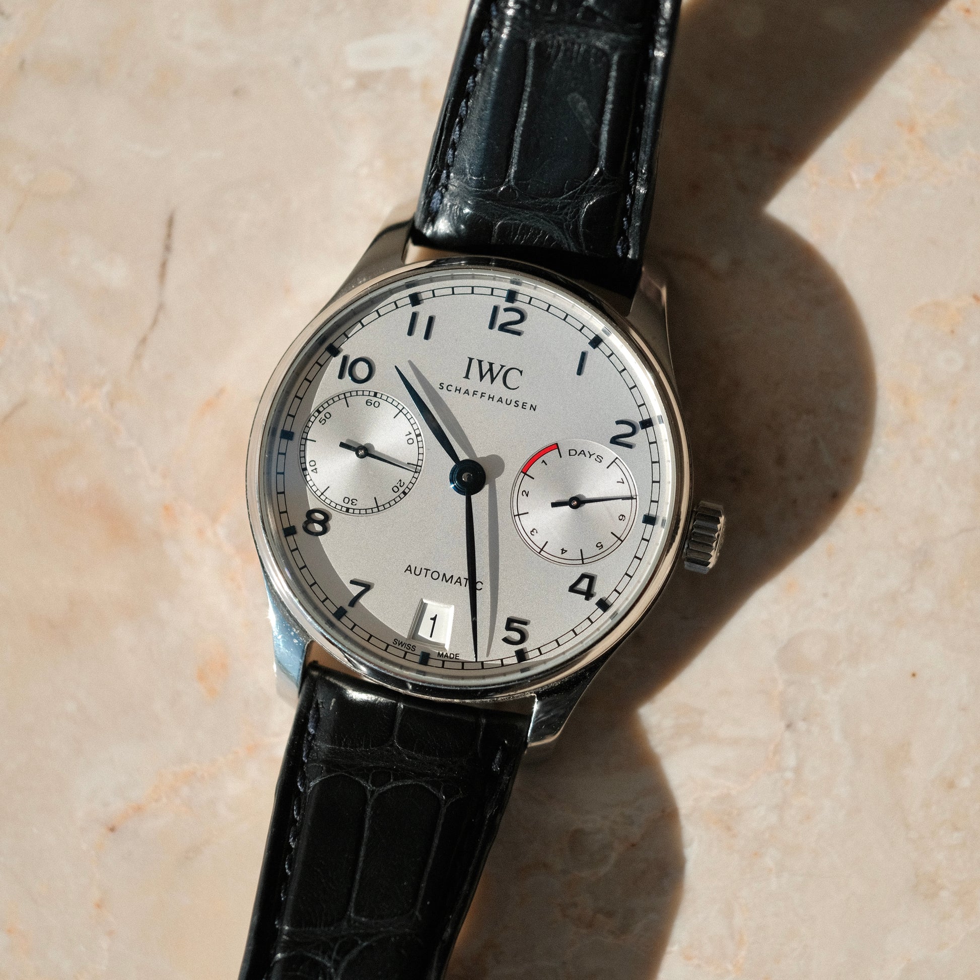 On offer today is a dress piece that effortlessly combines timeless aesthetics & Avant-Garde Innovation; the Portugieser 7 days from IWC, ref IW500705.