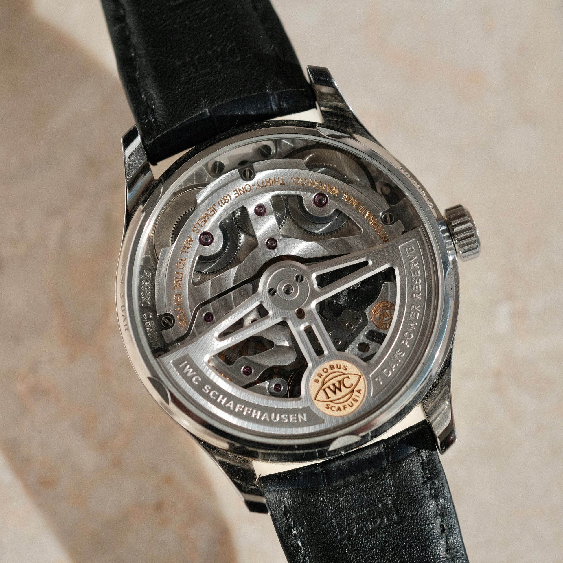 Sticking with the Portugieser’s legacy as one of the earliest ‘oversized’ dress-pieces; this 7 days features a large 42.3mm case diameter - flaunting a bold wrist presence; with the stunning calibre 52010 visible via the sapphire caseback.